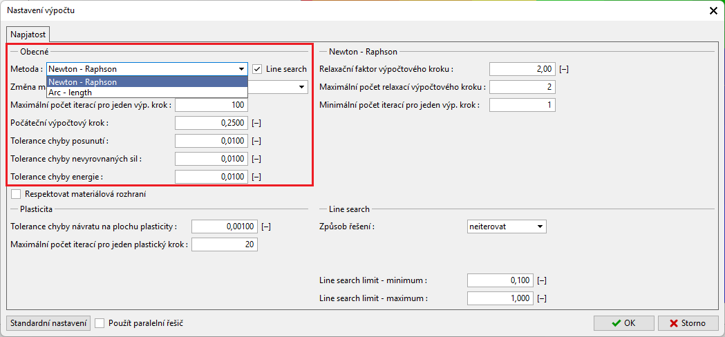 Rovnici lze řešit pouze přibližně užitím vhodné numerické metody. Cílem této metody je dosáhnout, v rámci procesu iterace rovnováhy, takového stavu napětí a deformace, pro který platí Δf = 0. V programu jsou zabudovány dvě základní metody: